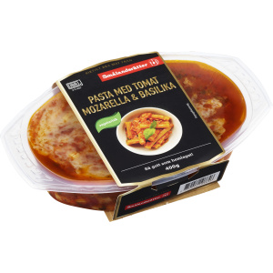 Pasta med tomat, mozzarella & basilika
